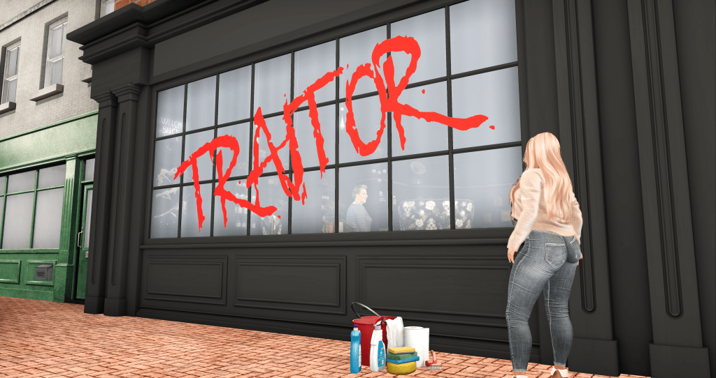ECLIPSE RIDGE, CO – Three local businesses were vandalized overnight in a shocking and targeted attack, with slanderous statements spray-painted across their storefronts. The businesses—Three Sisters Pub, Mystic Junction, and Action! Comics and Games—were defaced with words such as “traitor,” “murderer,” and “butcher.”