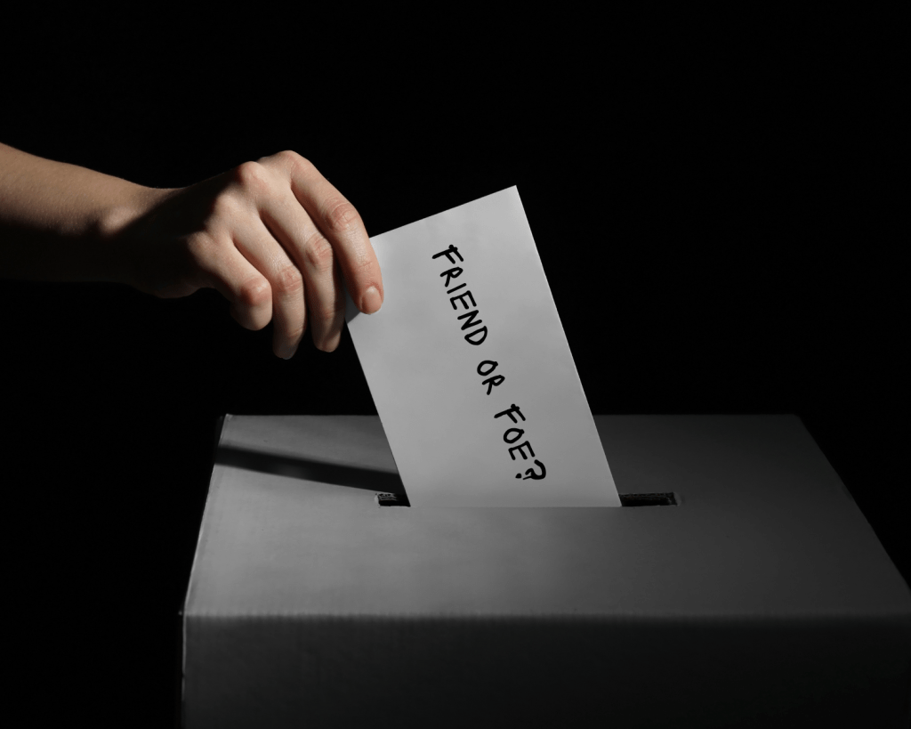 An ominous photo of a hand casting a vote into a ballot box with the post: